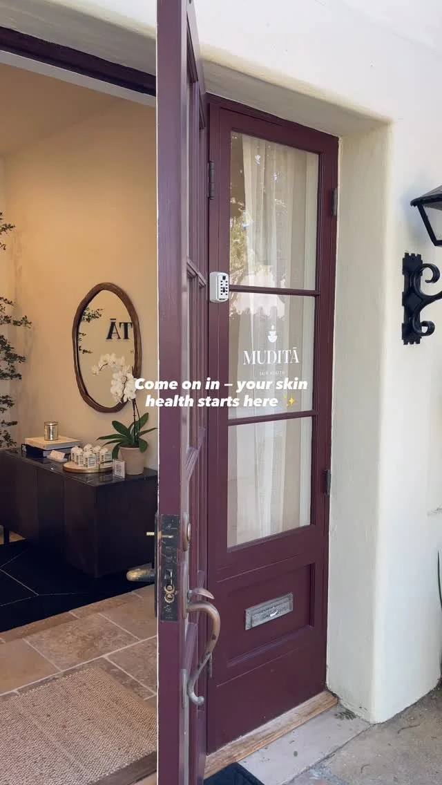 From parking lot, walk to the back end of the lot (towards the bell tower), take the pathway to the courtyard. MUDITĀ Skin Health is the first office on your right.